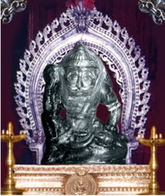 Facing the Narasimha idol is the idol of Anjaneya. It was installed in the recently renovated granite stonewalled temple. It is located at the end of the car street (in the middle of the town). The idol of Anajaneya is smeared with buttor and Sindhoor before the morning pooja is performed. The public vow to perform Rangapooja if they get good harvest, or marriage and other auspicious functions are performed or they get over any difficult situation successfully. |